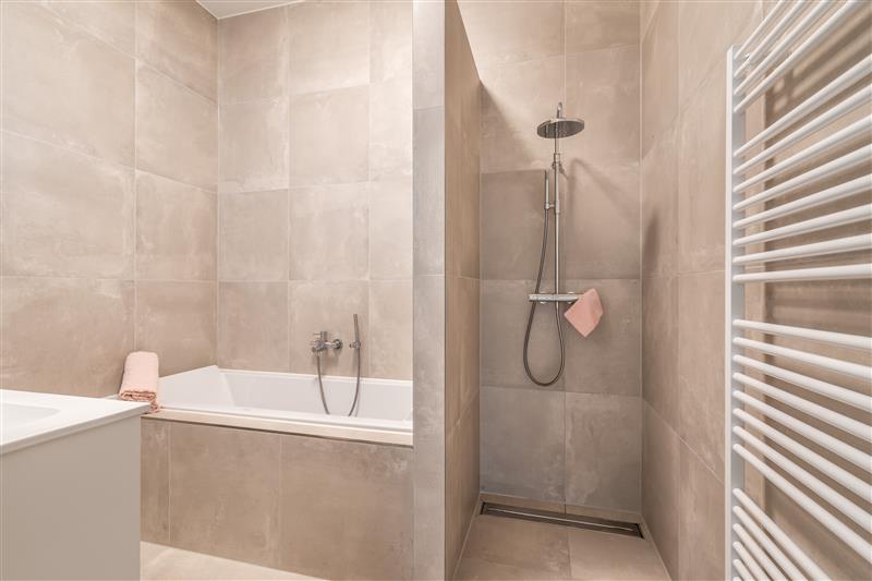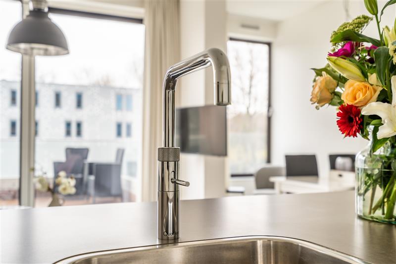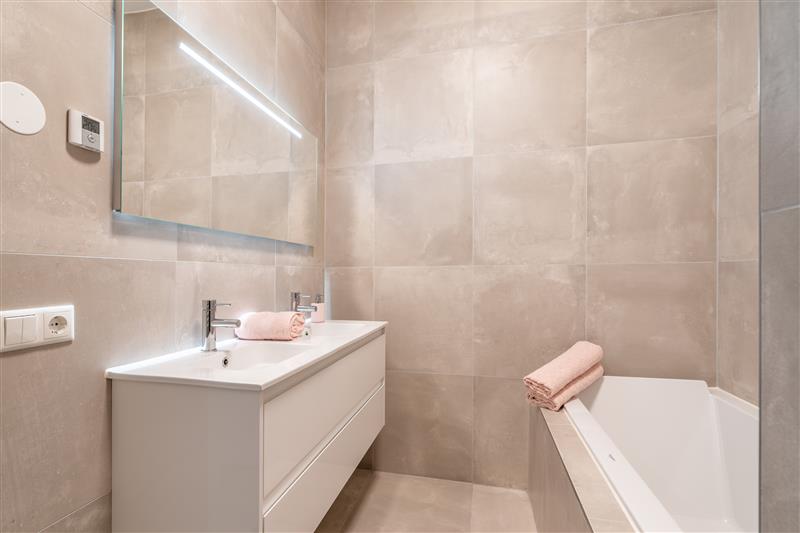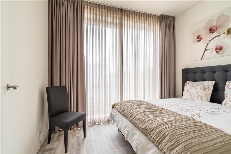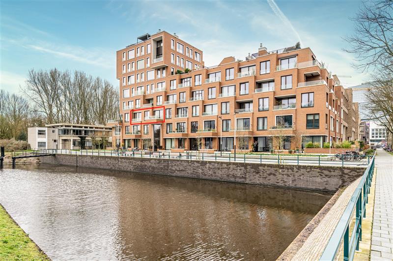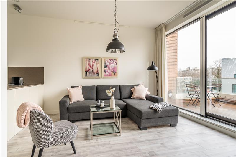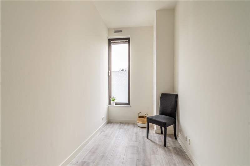 Living room with large windows, ceiling height of 3 meters and access to the balcony. Dining area and open kitchen with all necessary appliances, such as fridge, freezer, dishwasher, microwave/oven and Quooker. Master bedroom with a king-size bed. Additional second bedroom (or office) and plenty storage space. Bathroom with bath tub, separate shower and double sink. Separate toilet. Storage room with washing machine and dryer. In the basement you have your private parking spot and storage and a communal bike storage.