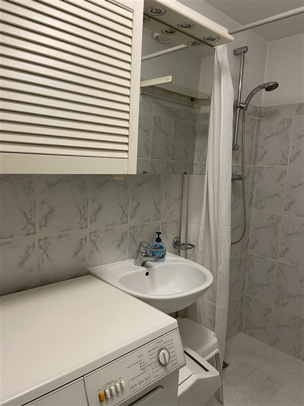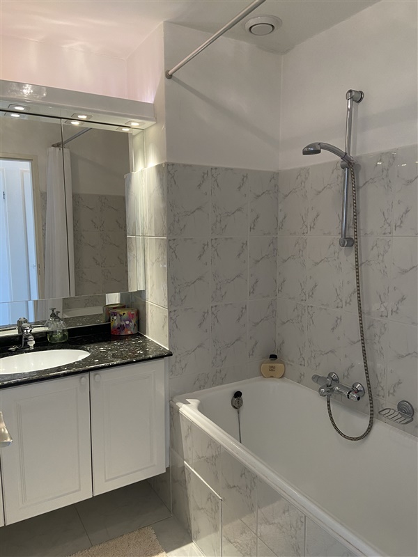 The apartment has 3 bedrooms and two bathrooms one with bathtub and sink. The second bathroom with a shower and sink. The apartment is fully furnished.