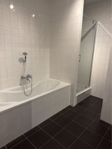 Two well-sized bedrooms, bathroom with bathtub, separate shower and double sink, separate toilet.