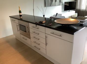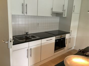 Central entrance with concierge (present during weekdays). With the elevator you can reach the apartment. Entrance, hallway, living room with semi open kitchen. Living room with dining. The kitchen is fully equipped and provided with dishwasher, refrigerator, freezer, oven, IH-stove and sink. From the living room you also have access to the balcony facing West.